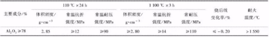 (2) 根据体积密度和显气孔率的关系,体积密度≥2.85g/cm3,则显气孔率<20%,耐火温度>1550℃;可避免低熔点物质粘附窑内衬。