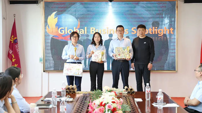 比赛中途,董事长楚科奇亲自莅临现场观摩,他高度赞扬了选手们的精彩表现,并提出了宝贵建议。楚总表示:"语言能力是国际化人才的必备素养,今天的比赛让我看到了年轻一代荣盛人的全球视野和专业功底,希望大家继续保持这份学习热情,将语言优势转化为业务优势,在开拓国际市场时既能精准传递产品价值,又能展现中国企业专业形象,真正成为连接中国制造与全球市场的桥梁。"